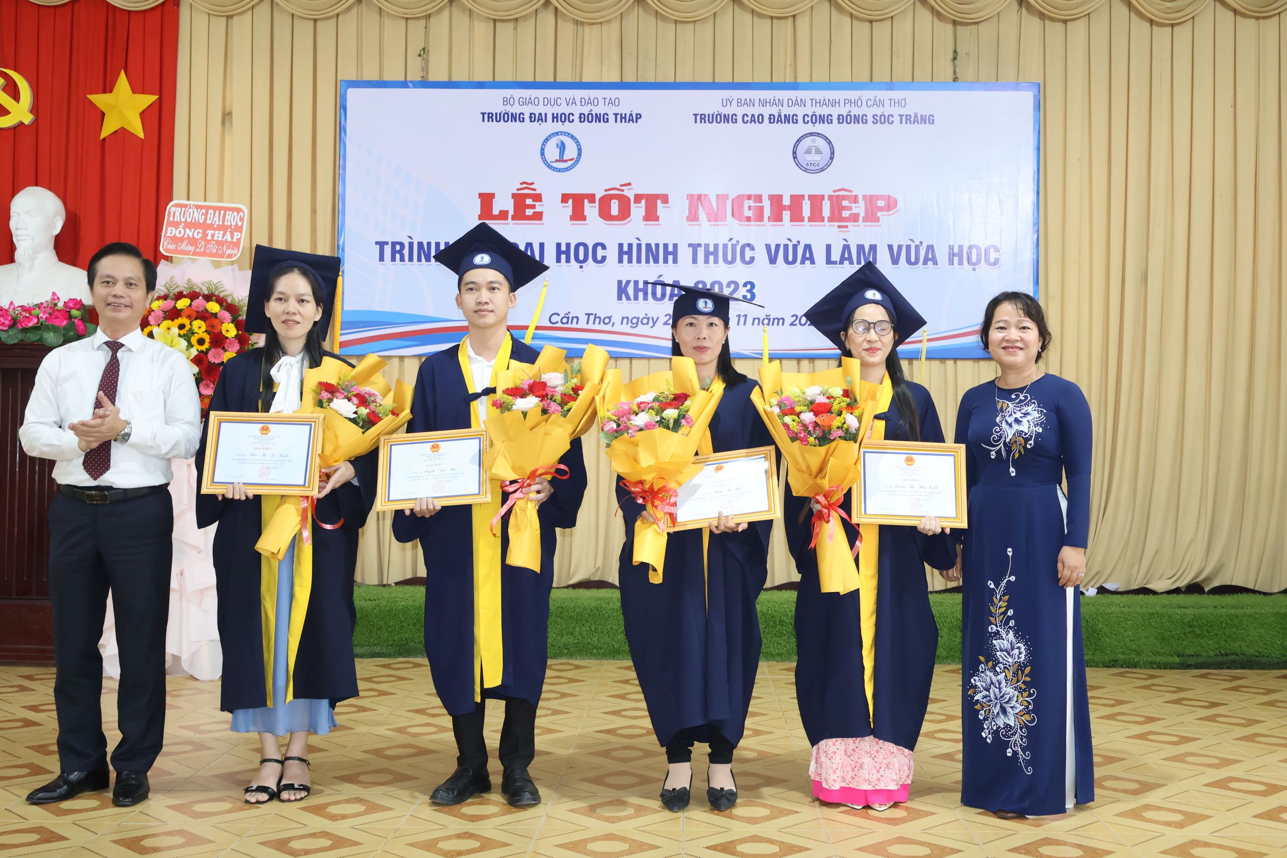 Lãnh đạo Trường Đại học Đồng Tháp, có sự hiện hiện của TS. Nguyễn Quốc Vũ - Phó Hiệu trưởng Trường đại học Đồng Tháp, ThS. Trần Văn Luận - Phó Giám đốc Trung tâm liên kết đào tạo và Bồi dưỡng. Về phía Trường Cao đẳng Cộng đồng Sóc Trăng, có cô Đinh Thị Thái Hà – Hiệu trưởng Nhà trường; thầy Nguyễn Văn Tâm – Phó Hiệu trưởng, Lãnh đạo các đơn vị thuộc và Trực thuộc Trường cùng đến dự. Đặc biệt, buổi lễ còn chào đón sự hiện diện của 183 tân Cử nhân thuộc các ngành: Giáo dục Mầm non và Giáo dục Tiểu học.