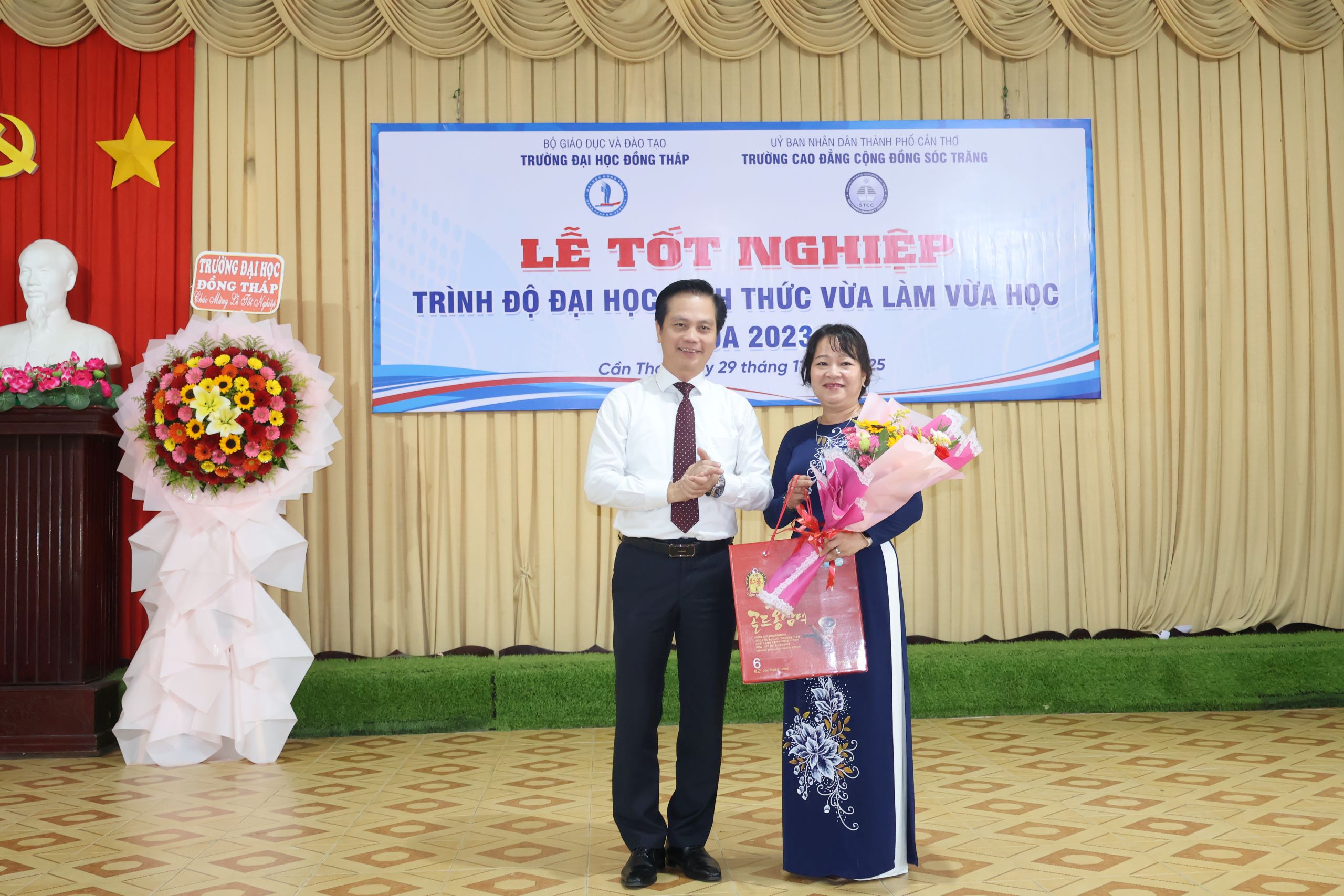 Nhằm thắt chặt hơn nữa mối quan hệ đối tác, đại diện lãnh đạo Trường Đại học Đồng Tháp đã trao tặng hoa và quà lưu niệm ý nghĩa cho Trường Cao đẳng Cộng đồng Sóc Trăng, thể hiện sự tri ân về công tác phối hợp tổ chức đào tạo trong suốt thời gian qua.