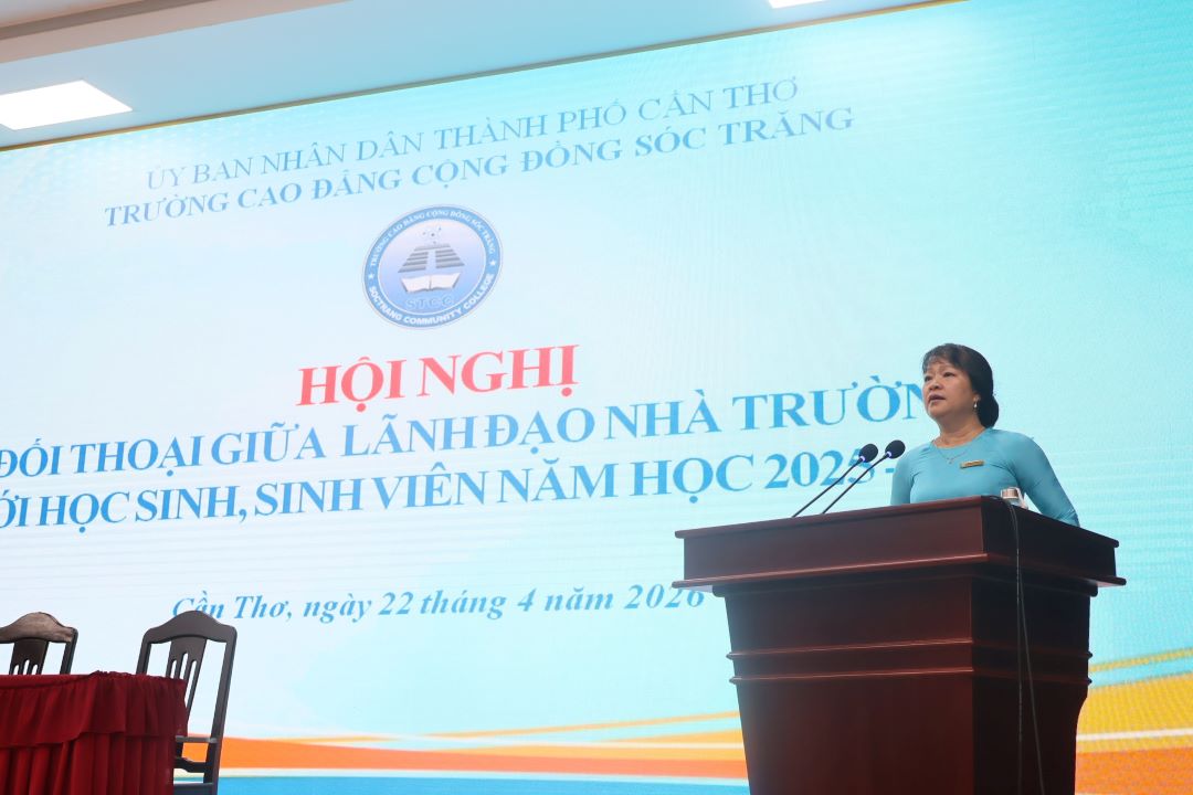 Ngày 22/4/2026, Trường Cao đẳng Cộng đồng Sóc Trăng đã tổ chức Hội nghị Đối thoại giữa Lãnh đạo Nhà trường với học sinh, sinh viên năm học 2025 - 2026 nhằm lắng nghe ý kiến, tâm tư, nguyện vọng của người học, đồng thời kịp thời giải đáp những vấn đề liên quan đến quá trình học tập, rèn luyện và sinh hoạt của sinh viên tại Trường.