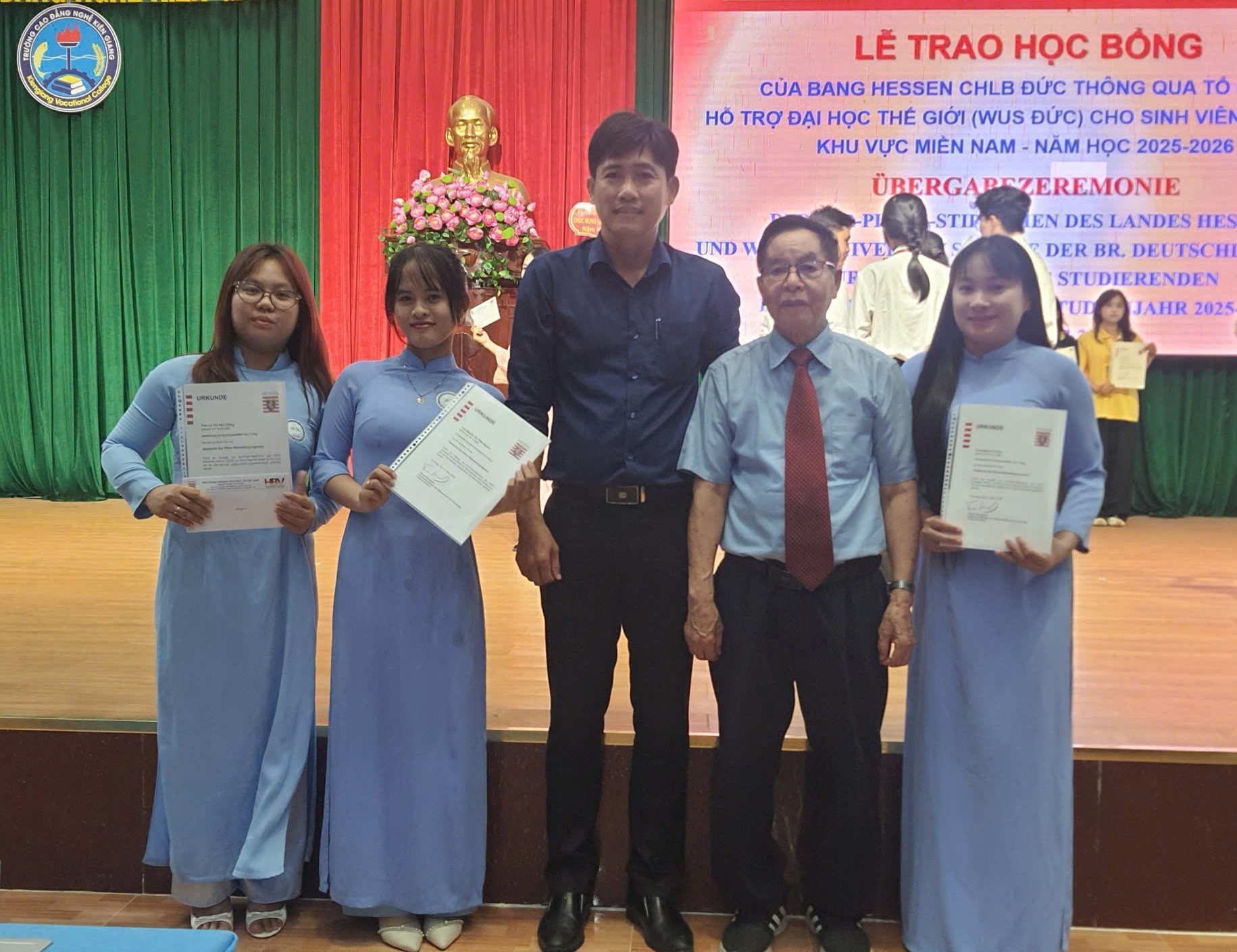 Ngày 17/3/2026, 03 sinh viên Trường CĐCĐ Sóc Trăng đã được đại diện Quỹ học bổng Hessen của Bộ Khoa học và Nghệ thuật Bang Hessen - Tổ chức Hỗ trợ Đại học Thế giới Cộng hòa Liên bang Đức, Hội Hữu nghị Việt Nam - Đức trao học bổng Hessen năm học 2025 - 2026 khu vực đồng bằng Sông Cửu Long tại Trường Cao đẳng nghề Kiên Giang.